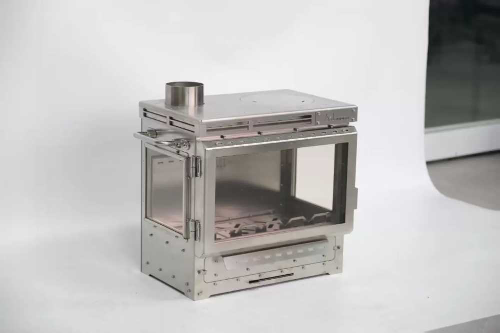 3 pieces of microcrystalline ceramic glass (temperature resistance of 1200°C) surround the furnace body, frameless snap design achieves a 280° field of fire viewing, anti-reflection film on the surface, and the combustion state can still be clearly observed under strong light;