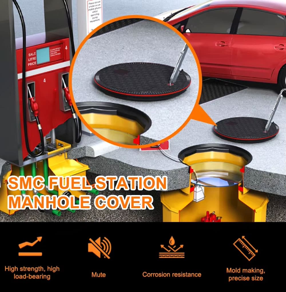 Our composite manhole cover has the characteristics of safety, corrosion resistance and easy installation. Specially produced for gas stations, with guaranteed quality!